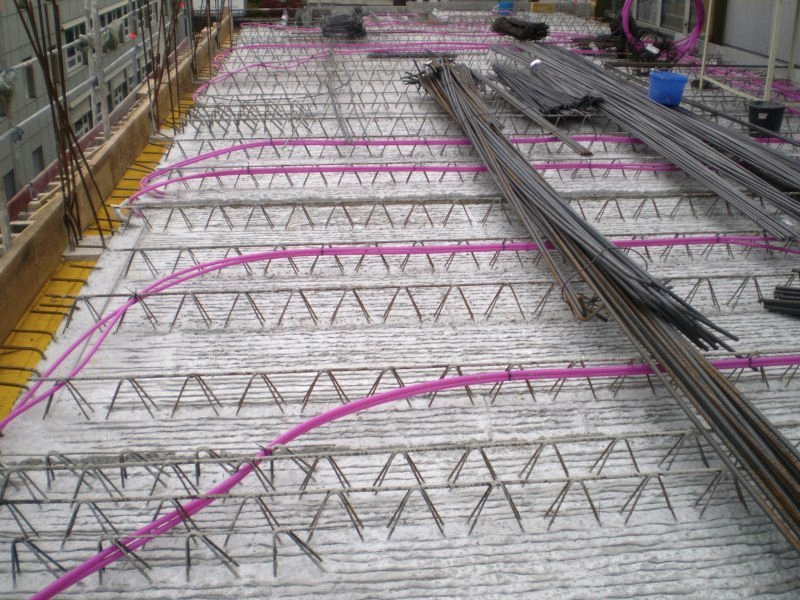 Filigrandecken mit eingebautem BETONTHERMIX-System. Filigrandecken oder Elementdecken sind Betonhalbfertigteile, die in Betonfertigteilwerken hergestellt werden. Das BETONTHERMIX -System ist ein Rohrsystem zur Bauteilaktivierung (auch: Betondeckenaktivierung, Betonkernaktivierung). Die Klima-Filigrandeckenplatte ist als Gebrauchsmuster Nr. 203 15 885.7 eingetragen.