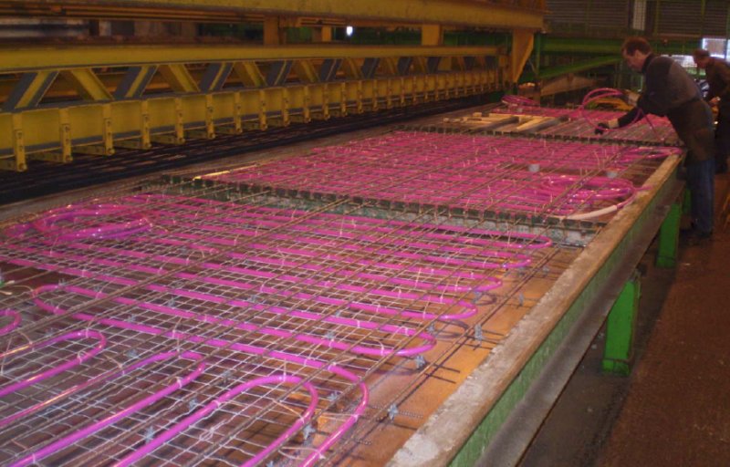 Durch den Einsatz des Rohrsystems in einer Fertigteildecke kann die Wärme in einem Gebäude wesentlich effektiver ausgenutzt werden als bei anderen Systemen, wie beispielsweise der Fußbodenheizung. Das spart nicht nur Energiekosten. Auch die Montage wird dadurch erleichtert, dass die Kunststoffrohre bereits im Werk in die Betonplatten eingelassen werden, ohne dass das Produktionsverfahren geändert oder der Produktionsprozess verzögert wird.